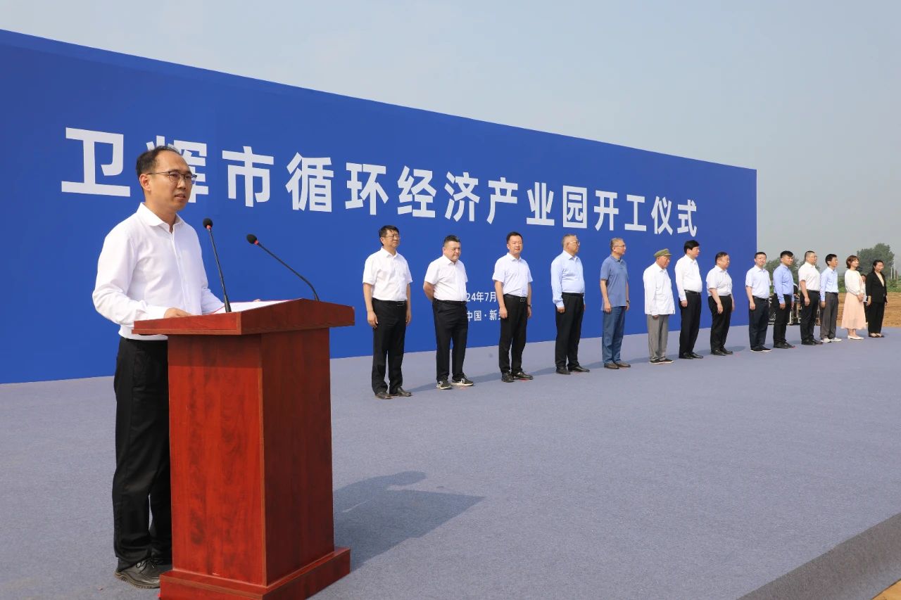 儀式第二項(xiàng),新鄉(xiāng)市委常委、統(tǒng)戰(zhàn)部部長(zhǎng)、市政府黨組成員祁文華講話。他說(shuō),我們?cè)谶@里隆重舉行衛(wèi)輝市循環(huán)經(jīng)濟(jì)產(chǎn)業(yè)園開(kāi)工儀式,既是深入貫徹習(xí)近平生態(tài)文明思想,大力發(fā)展循環(huán)經(jīng)濟(jì),推動(dòng)綠色低碳高質(zhì)量發(fā)展的生動(dòng)實(shí)踐,也是堅(jiān)持以科技創(chuàng)新引領(lǐng)產(chǎn)業(yè)創(chuàng)新,積極培育和發(fā)展新質(zhì)生產(chǎn)力的重要舉措,對(duì)進(jìn)一步優(yōu)化全市產(chǎn)業(yè)結(jié)構(gòu)、實(shí)現(xiàn)經(jīng)濟(jì)高質(zhì)量發(fā)展具有重要意義。他指出綠色循環(huán)低碳發(fā)展,是當(dāng)今時(shí)代科技革命和產(chǎn)業(yè)變革的方向,是新發(fā)展理念的重要內(nèi)容。近年來(lái),新鄉(xiāng)始終遵循減量化、再利用、資源化的循環(huán)經(jīng)濟(jì)理念,大力發(fā)展循環(huán)經(jīng)濟(jì),推進(jìn)資源節(jié)約集約利用,積極構(gòu)建資源循環(huán)型產(chǎn)業(yè)體系和廢舊物資循環(huán)利用體系。今天開(kāi)工建設(shè)的衛(wèi)輝市循環(huán)經(jīng)濟(jì)產(chǎn)業(yè)園,既是加快循環(huán)經(jīng)濟(jì)技術(shù)成果轉(zhuǎn)化的重要載體,也是推進(jìn)資源節(jié)約集約利用的重要嘗試,能夠?qū)崿F(xiàn)聚酯塑料及下游應(yīng)用全產(chǎn)業(yè)鏈閉合,達(dá)到聚酯塑料的無(wú)限循環(huán),對(duì)提升我市包裝材料產(chǎn)業(yè)核心競(jìng)爭(zhēng)力,推動(dòng)產(chǎn)業(yè)鏈延鏈、補(bǔ)鏈、強(qiáng)鏈意義重大,必將為促進(jìn)塑料行業(yè)綠色發(fā)展,實(shí)現(xiàn)碳達(dá)峰、碳中和作出積極貢獻(xiàn)。今天的項(xiàng)目就是明天的發(fā)展。他對(duì)衛(wèi)輝市循環(huán)經(jīng)濟(jì)產(chǎn)業(yè)園建設(shè)充滿期待。