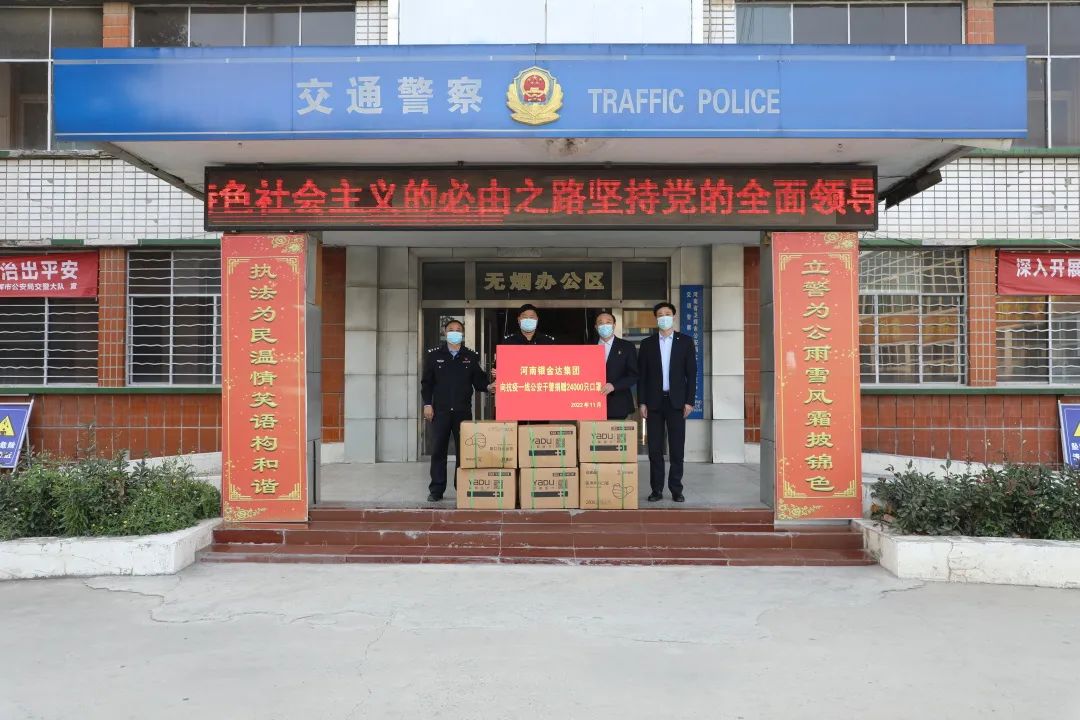 在當(dāng)前疫情嚴(yán)峻復(fù)雜的形勢下,公安干警不懼風(fēng)險英勇戰(zhàn)斗在疫防一線,為守護(hù)一方平安和抗擊疫情作出了重要貢獻(xiàn)。銀金達(dá)集團(tuán)黨委書記、董事長閆銀鳳為助力公安干警抗擊疫情,委托集團(tuán)黨委副書記、工會主席楊鳳瑞和彩印公司副總經(jīng)理劉廣斌到衛(wèi)輝市公安局、衛(wèi)輝市交警大隊慰問,并捐獻(xiàn)防疫口罩2.4萬只,表達(dá)銀金達(dá)干部職工的熱誠問候。