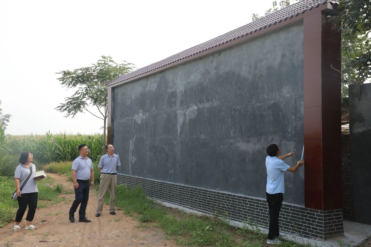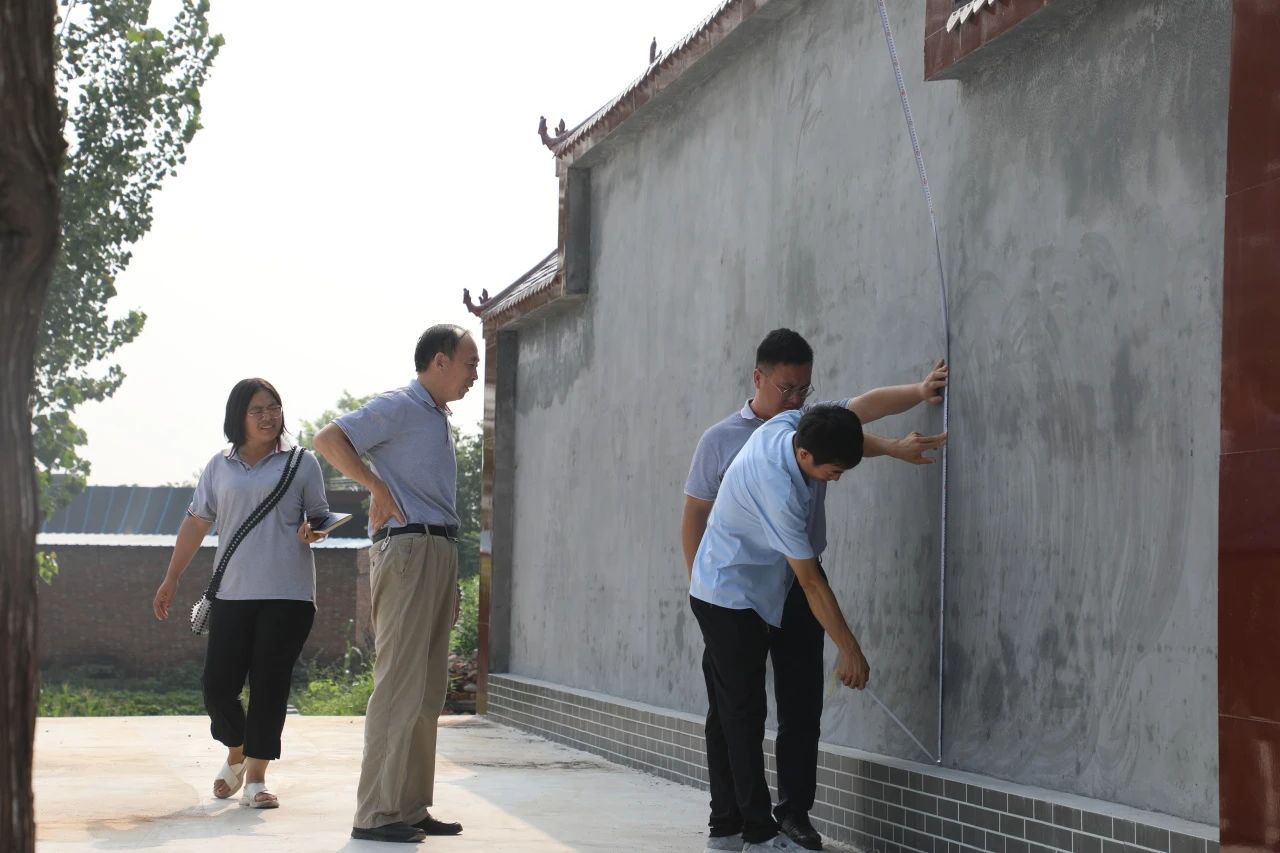 在王二莊村文化墻和文化活動(dòng)廣場(chǎng),楊鳳瑞一行仔細(xì)查看了項(xiàng)目建設(shè)情況,已建成文化廣場(chǎng)面積662平方米,文化墻立體面積45平方米,楊鳳瑞對(duì)項(xiàng)目建設(shè)質(zhì)量表示滿意,并對(duì)兩個(gè)場(chǎng)地的后續(xù)建設(shè)方案進(jìn)行討論,經(jīng)現(xiàn)場(chǎng)測(cè)量,確定了文化墻和廣場(chǎng)背景墻的宣傳設(shè)計(jì)規(guī)劃。