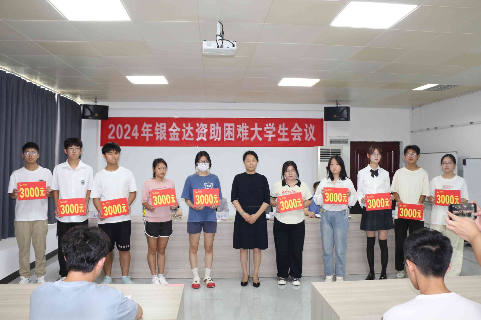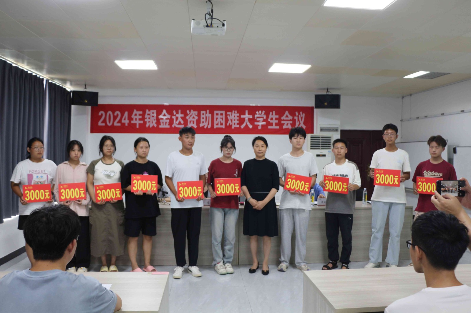 銀金達集團黨委書記、董事長閆銀鳳親自為各位困難大學生發(fā)放資助金。